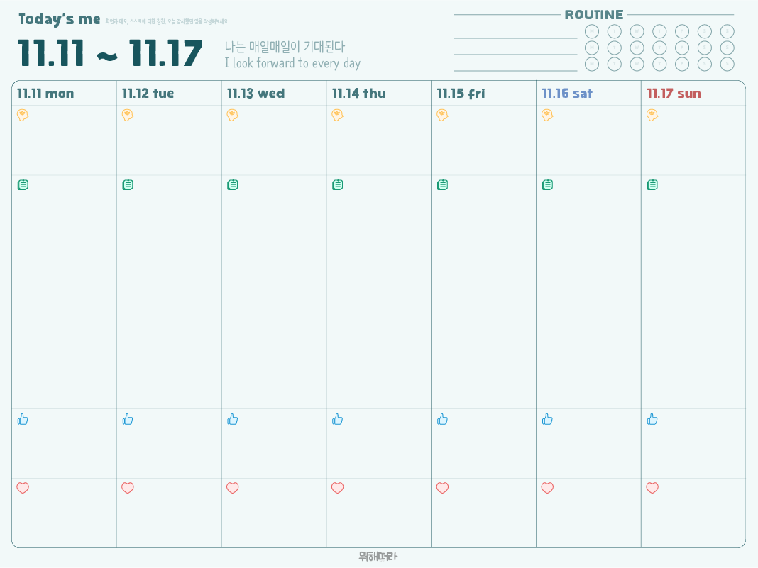 루틴 체크할 때 도움 될 수 있게, 동그라미 안에 요일별 알파벳을 적어두었다.